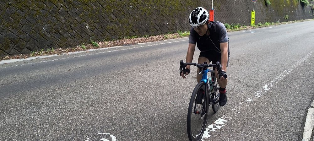 山中湖に向かう最後の激坂!! この坂を登りきれば視界に山中湖が広がってきます。最後の一踏ん張り!