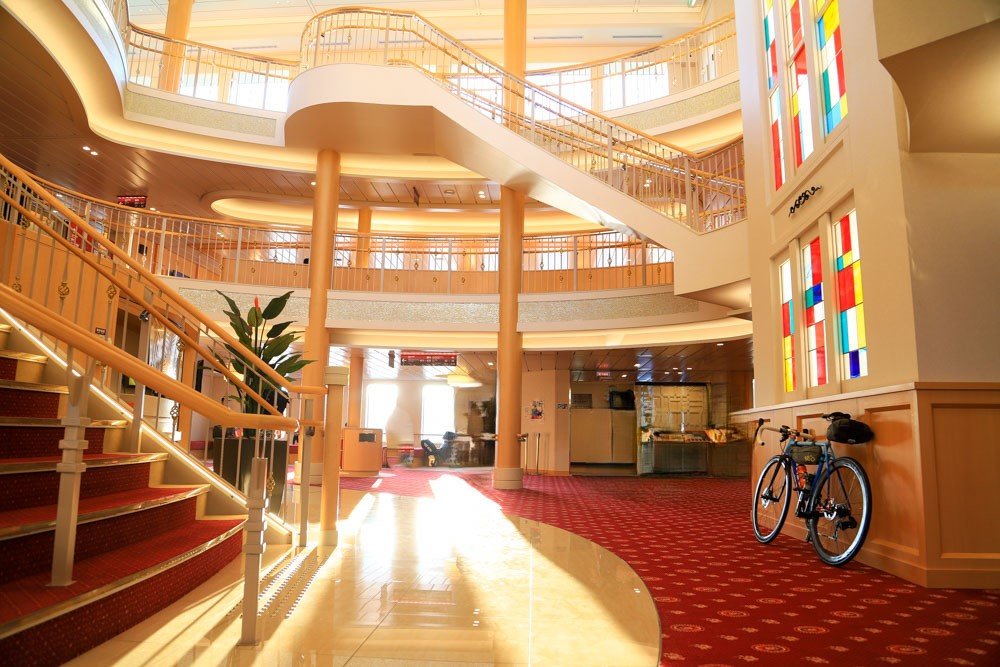 フェリー内には大浴場や食堂があり、移動中もリラックス。