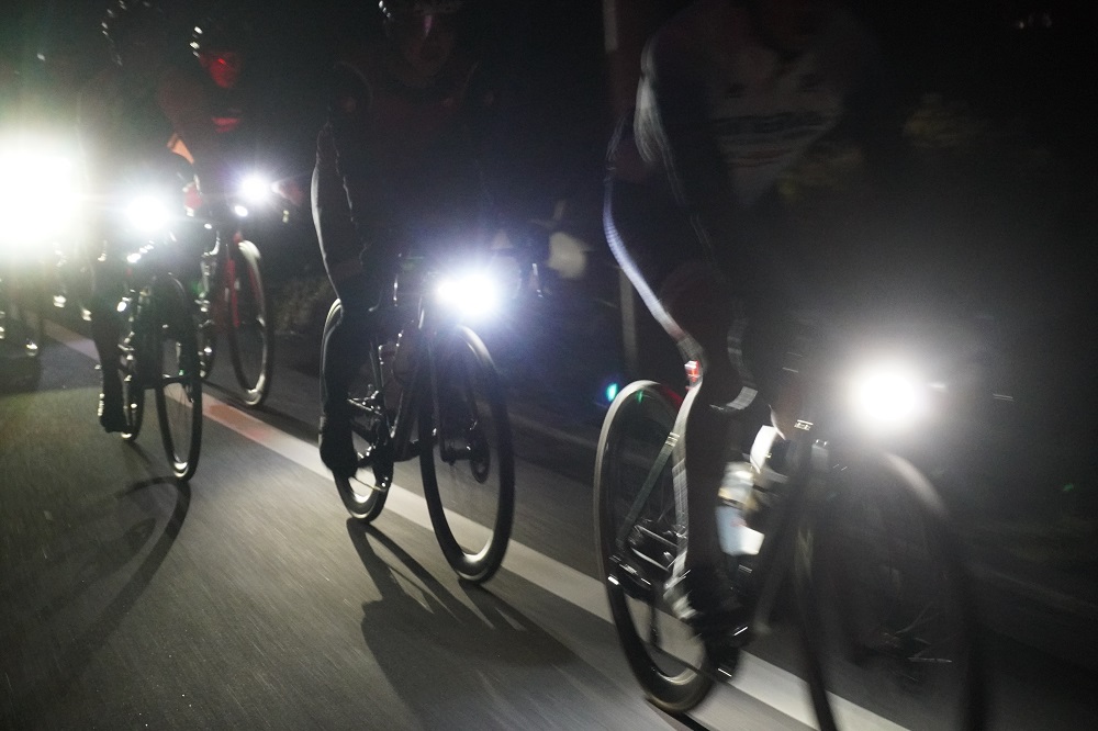 ライトの光だけを頼りに、静寂の闇を切り裂き進みます。