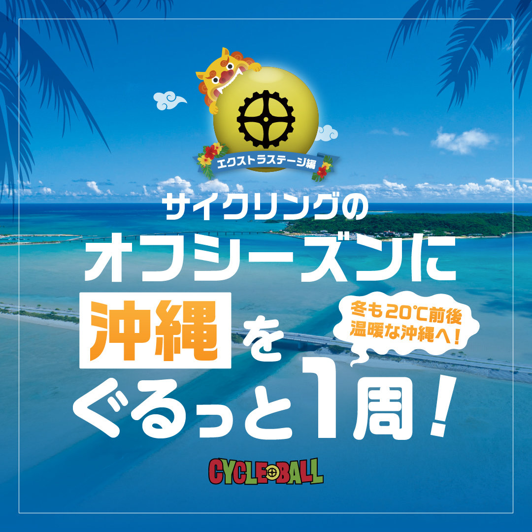 おきいちステージのチャレンジ期間は11/21~2/15。日本列島が、寒さに凍えサイクリングオフシーズンに入る中、沖縄だけは平均気温20℃前後と絶好のサイクリングシーズンを迎えます。堕落しがちなオフの目標として、「沖縄1周」に挑戦してみてください。