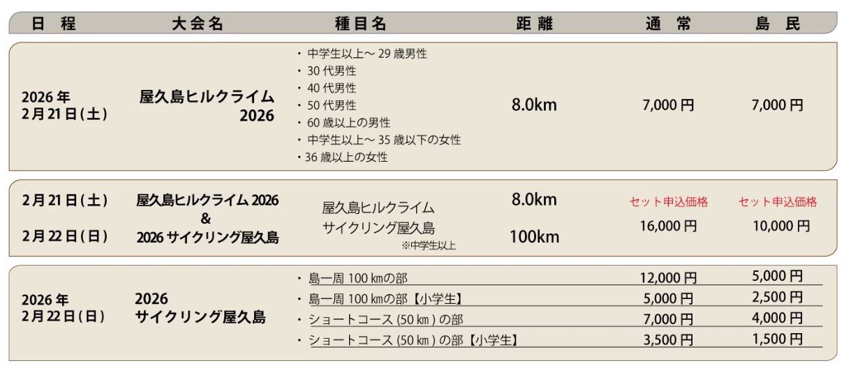 - ・屋久島ヒルクライム:2月21日(土)