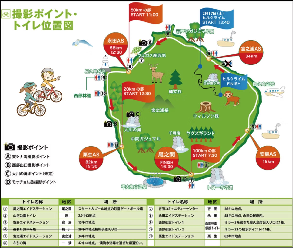 イベント前日の2月21日(土)には、白谷雲水峡を目指す「屋久島ヒルクライム」も開催されます。