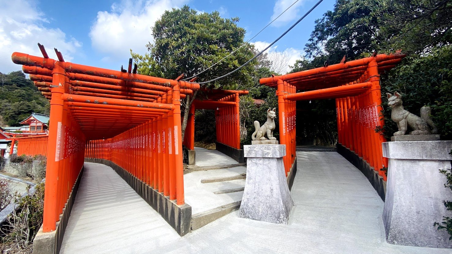 朱塗りの鳥居が海へと続く「海中鳥居」は、インスタ映え間違いなしの景色。