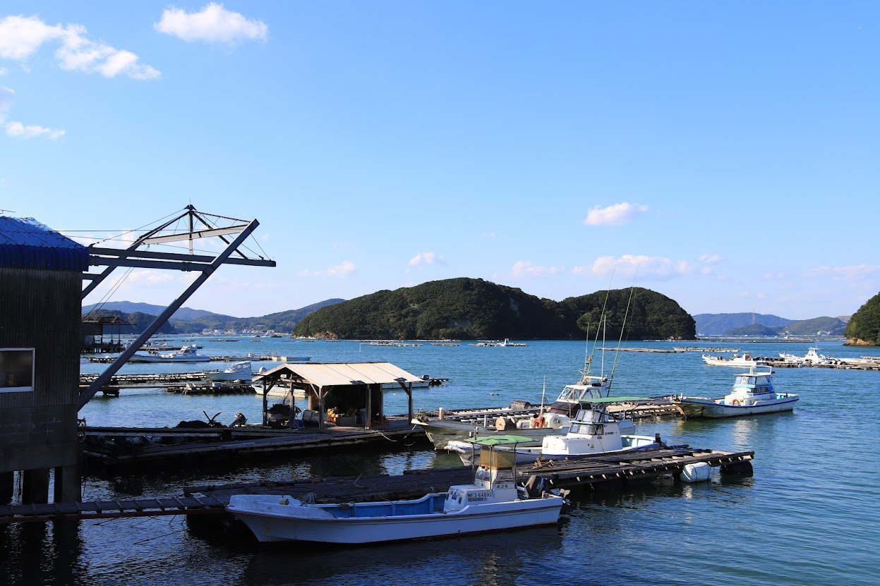 近鉄の終点でもある賢島駅周辺は、観光船の発着所があり、英虞湾に浮かぶ大小の島々を望む絶景スポットでもあります。